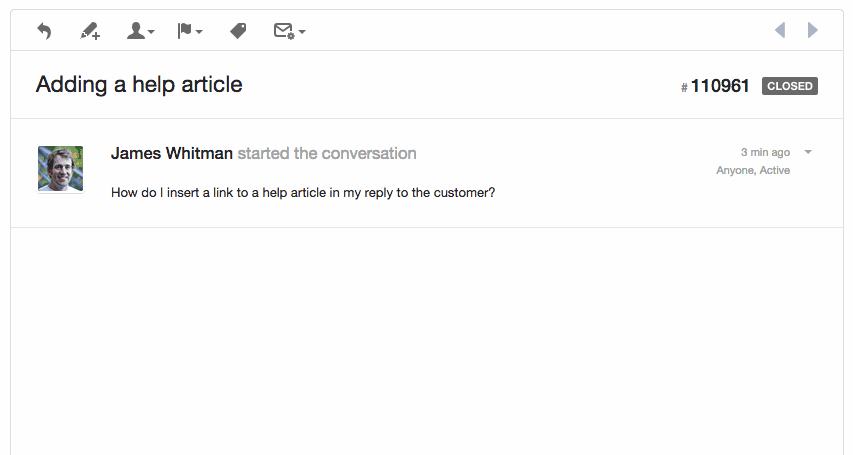 When your knowledge base is integrated, the process is especially easy because you can pull in articles without leaving your reply.